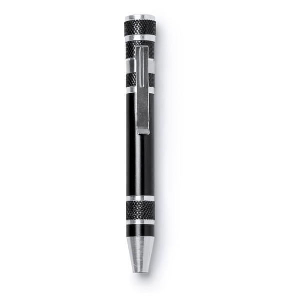 8 screwdriver heads, star and flat, included.