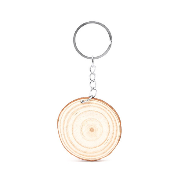BUDAN Natural wood cut keyring with metal ring - REDONDO - EgotierPro KO4054