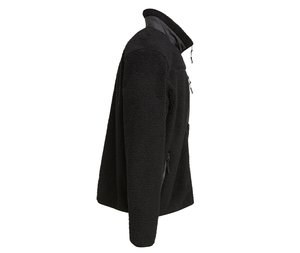 Stand-up collar. Zippered closure and chest pocket. Zippered side pockets. Durable, comfortable polyester outer shell. Bonded Sherpa lining.