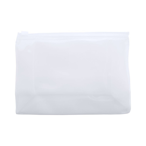 Toilet bag in transparent PVC with air-tight seal.