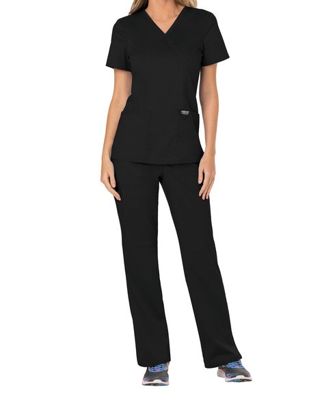 Cherokee CHWWE610 - Black - Elegant Ladies' Twill Wrap Top with Pockets