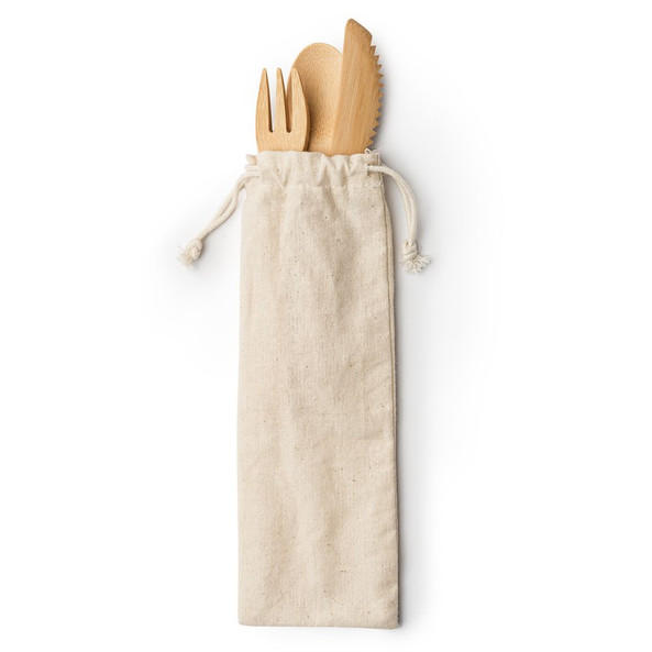 COLMER Bamboo cutlery set in a natural cotton drawstring pouch
