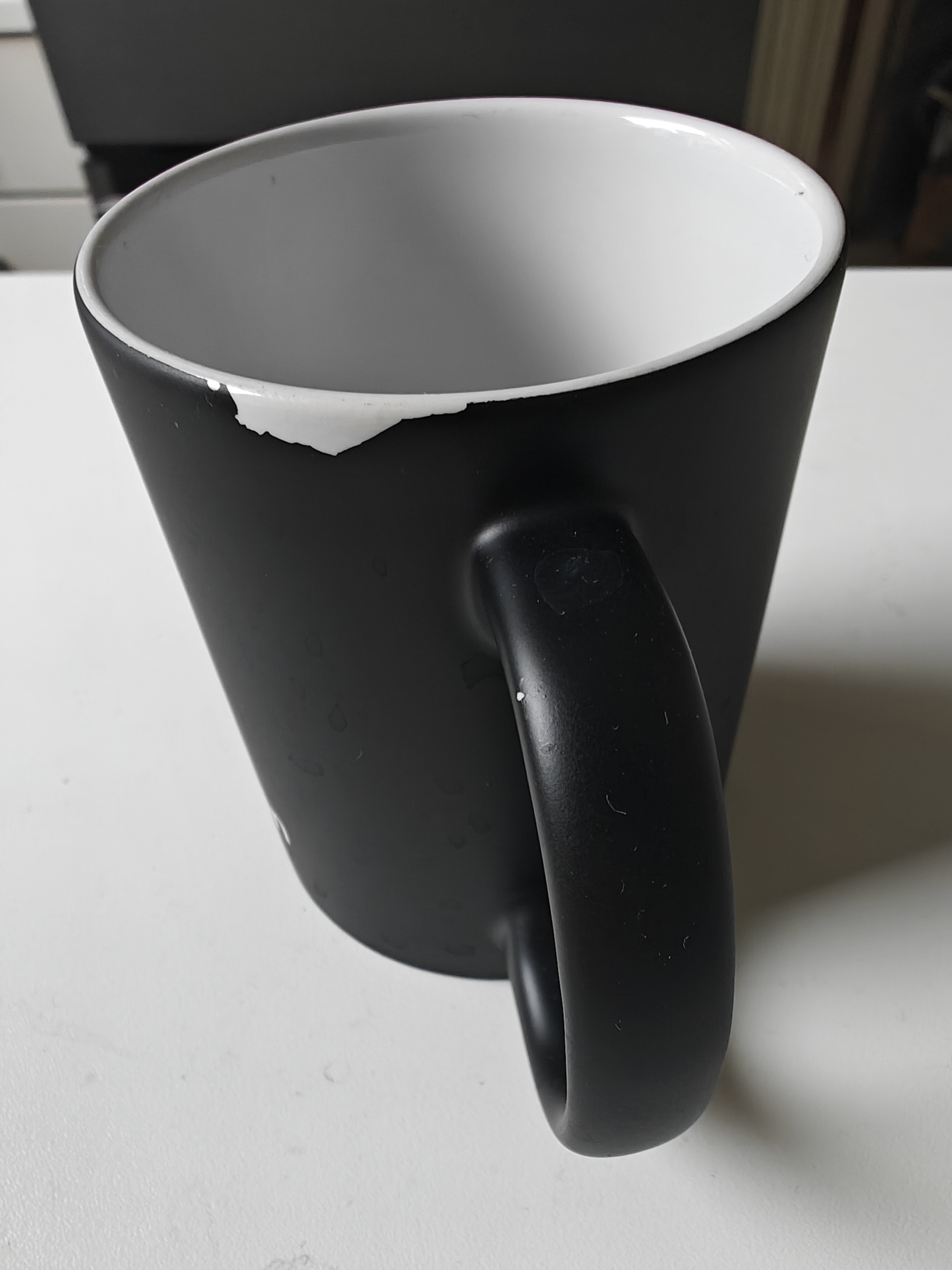 The mug has a diameter of 8 cm and a height of 9.5 cm.