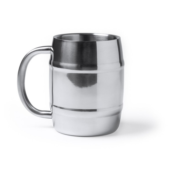 Double-walled 304 stainless steel beer mug with brushed finish.