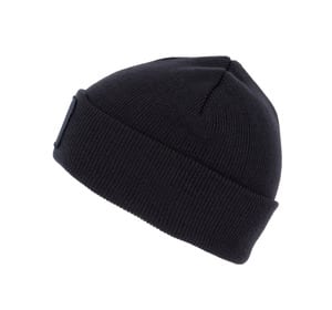 Knitted turn-up beanie in soft acrylic.
