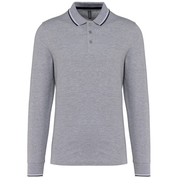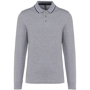Kariban K280 - Oxford Grey / Navy / White - Men’s long-sleeved piqué knit polo shirt