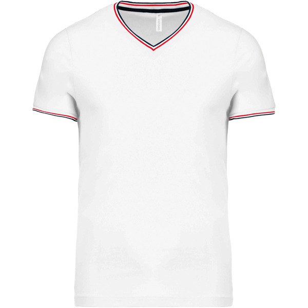 Kariban K374 - White / Navy / Red - Men's piqué knit V-neck T-shirt