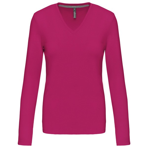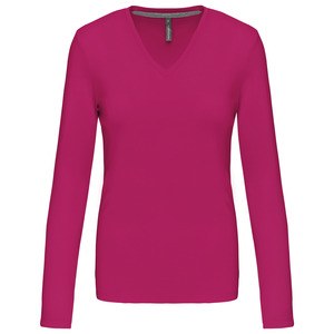 Kariban K382 - Fuchsia - LADIES' LONG SLEEVE V-NECK T-SHIRT