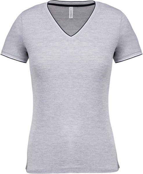 Kariban K394 - Oxford Grey / Navy / White - Ladies’ piqué knit V-neck T-shirt