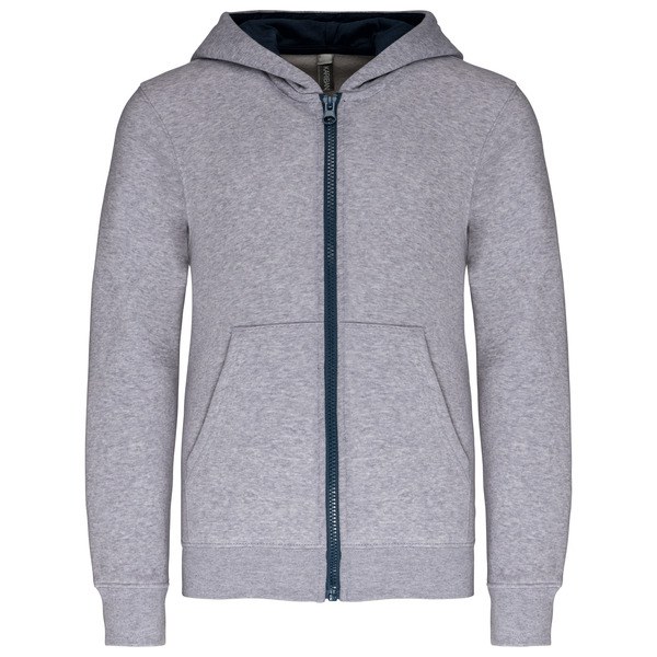 Kariban K486 - Oxford Grey / Navy - Children's zipped hooded sweatshirt
