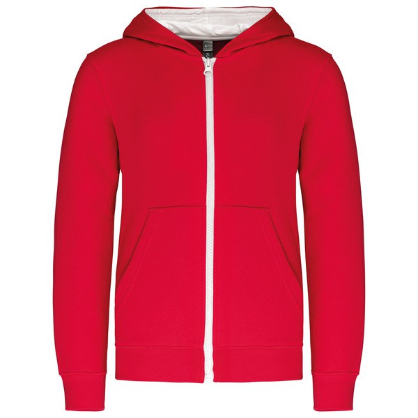 Kariban K486 - Red / White - Children's zipped hooded sweatshirt