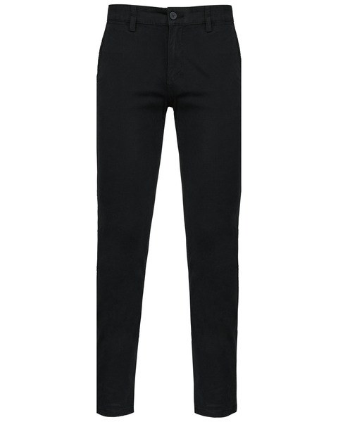 The belt loops, zipper and button closure, two side pockets, and two back pockets with piping and stitching reinforcement are all features of these men's chino pants.