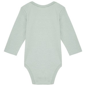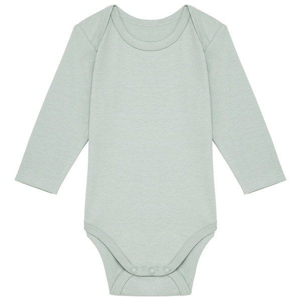 Baby grow bottom fastening with 3 press studs and bias finish.