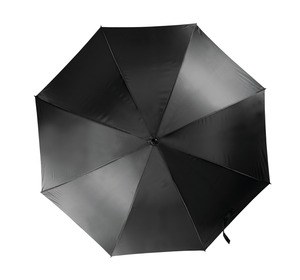 This automatic opening umbrella is made of 210T polyester fabric and has a length of 23" or 58,5 cm, a diameter of 105 cm, a metal shaft with a thickness of 10 mm, fiberglass ribs, a rounded handle made of polypropylene plastic covered with rubber to give it a contemporary look, and metal shaft tips.