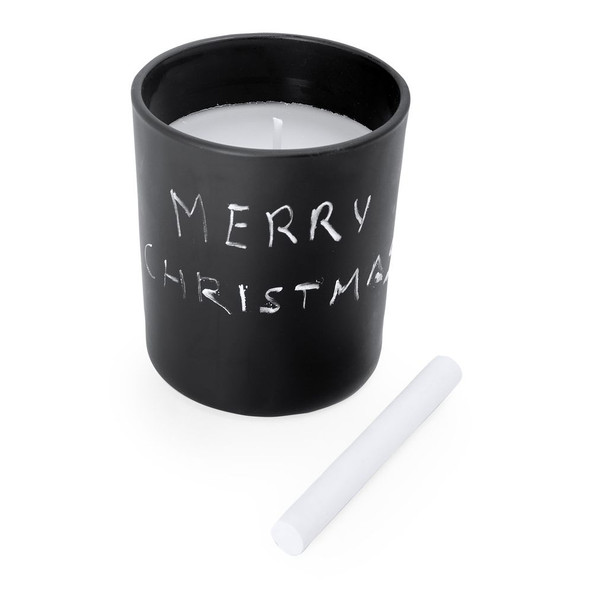 Vanilla-scented candle in a round ceramic black slate recipient.