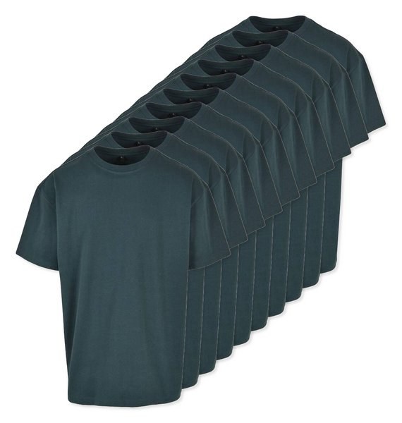 Pack of 10 Build Your Brand BY102 - Bottle Green - Classic Comfort Oversized Cotton T-Shirt for Men
