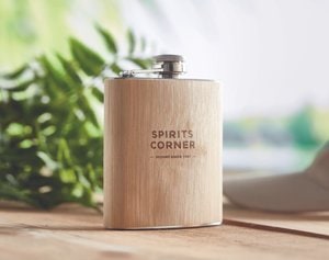 Pack of 10 GiftRetail MO6356 - Beige - HIPHIP Eco-Friendly Bamboo Slim Hip Flask 175ml