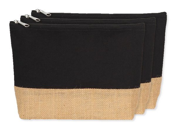 Pack of 30 Kimood KI0276 - Black/ Natural - Eco-Friendly Canvas and Jute Zipper Pouch