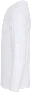 This t-shirt has a round neck with a 3-button opening , it can be worn long- sleeved or rolled up thanks to its button placket on the sleeves .