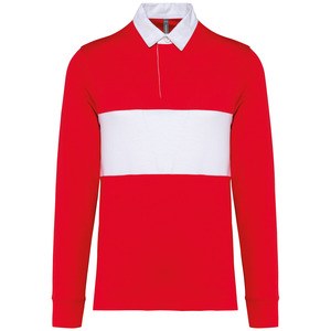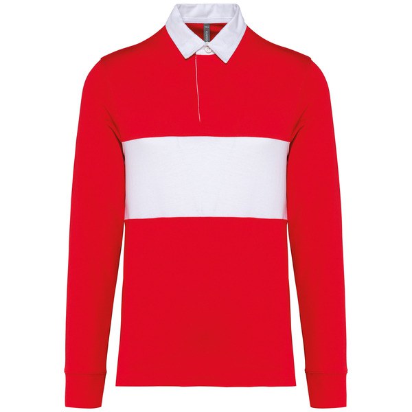 Proact PA429 - Sporty Red / White - Long-sleeved rugby polo shirt