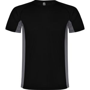 Roly CA6595 - Black/Dark Lead - SHANGHAI Technical t-shirt with a combination of two polyester fabrics and short-sleeve raglan style