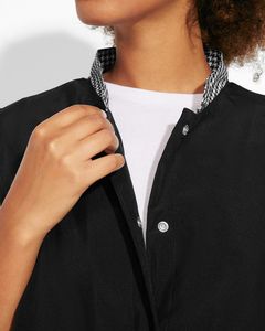 Mandarin collar, · Front fastening with concealed press studs.