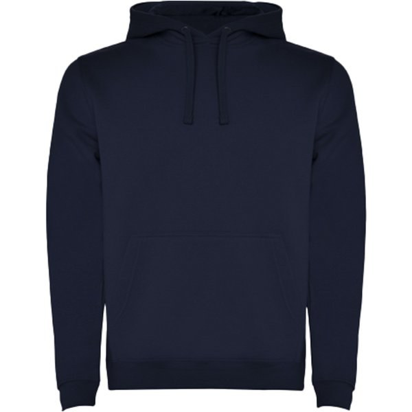 Two-colour hoodie with double fabric, contrasting adjustable drawcord, reinforced covered seams in collar and kangaroo style pocket.