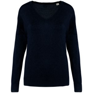 Spasso SP921 - Navy Blue - Eco-friendly ladies’ V-neck lyocell jumper