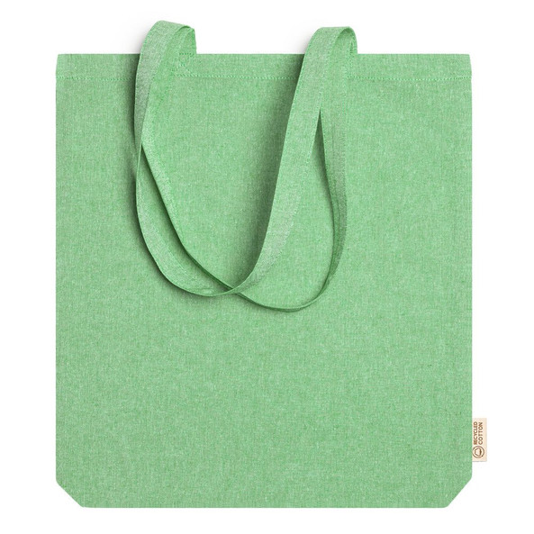 Bag made of 140 gsm recycled cotton in a heather finish design, with 70 cm long handles.