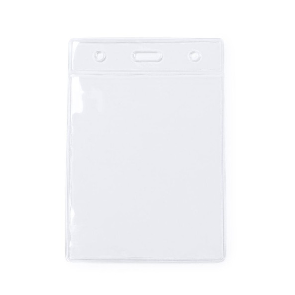 Transparent PVC badge holder in a vertical design.