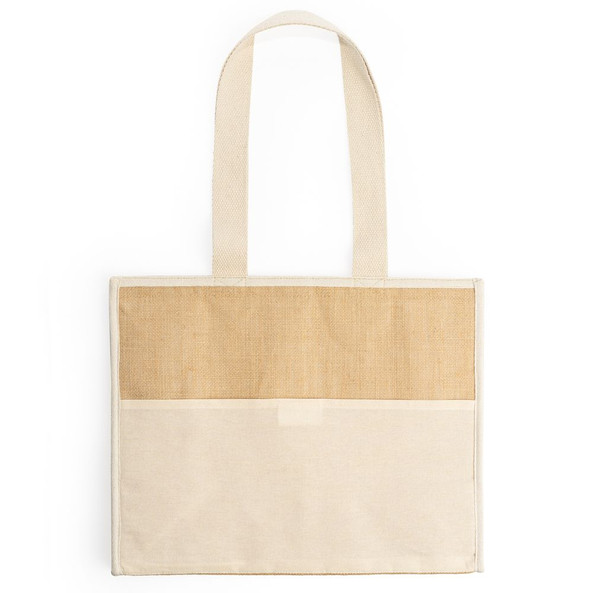 Front pocket and natural cotton handles.
