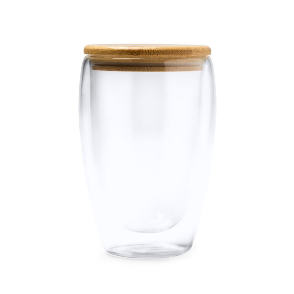 Double-walled glass made of borosilicate glass with bamboo lid.