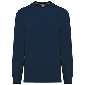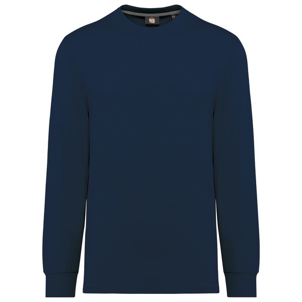 2x1 ribbed crew neckline with elastane and orange taped neck on the plain and marled colours and matching on the fluorescent colours.
