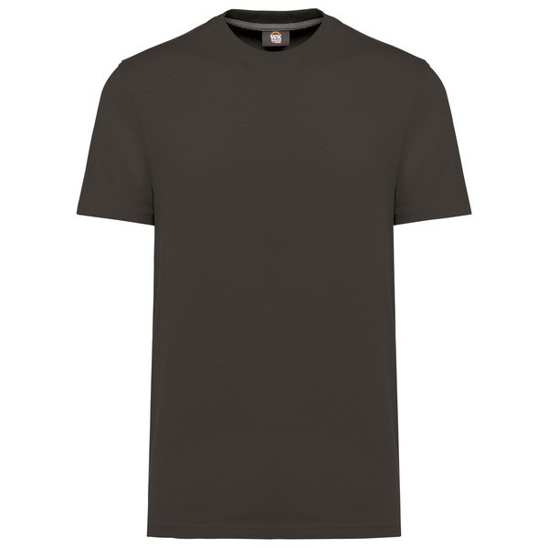 2x1 ribbed crew neckline with elastane and orange taped neck on the plain and marled colours and matching on the fluorescent colours.